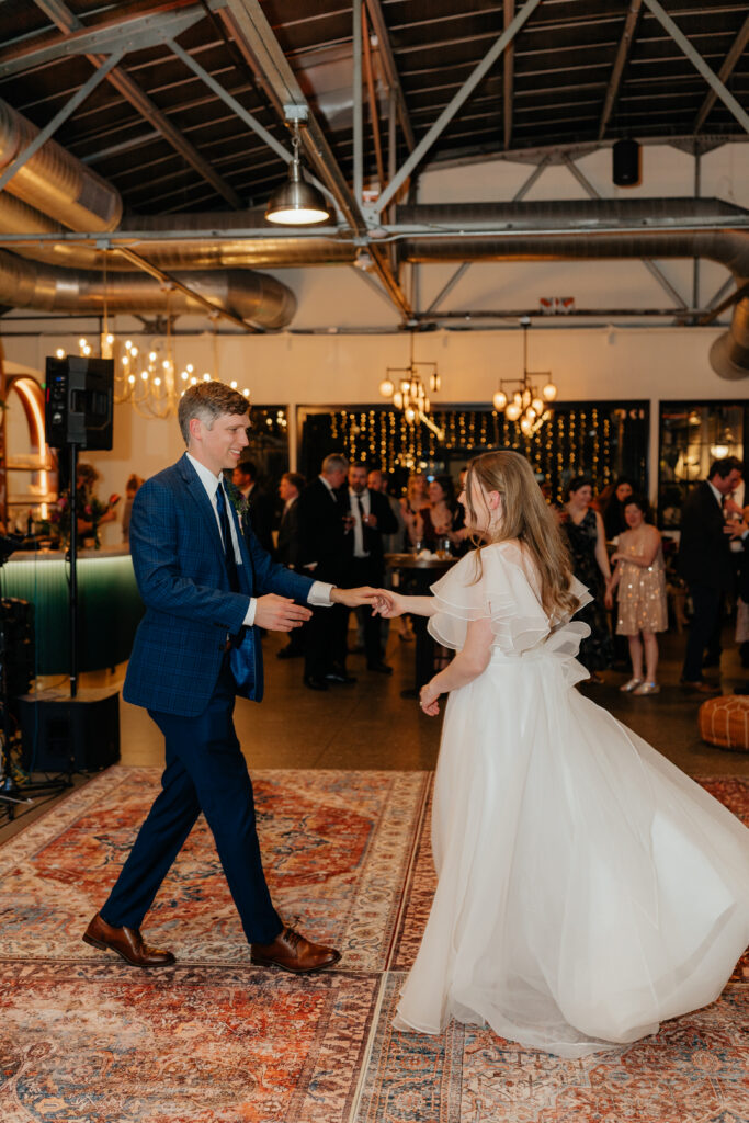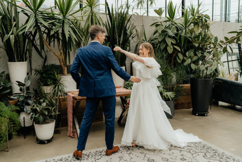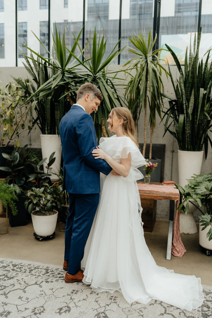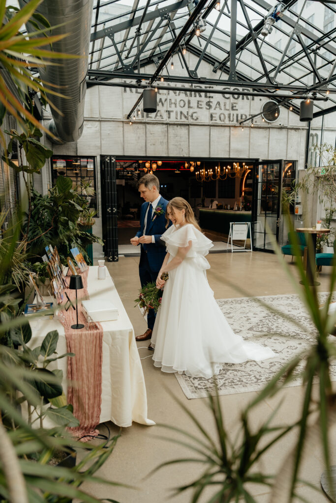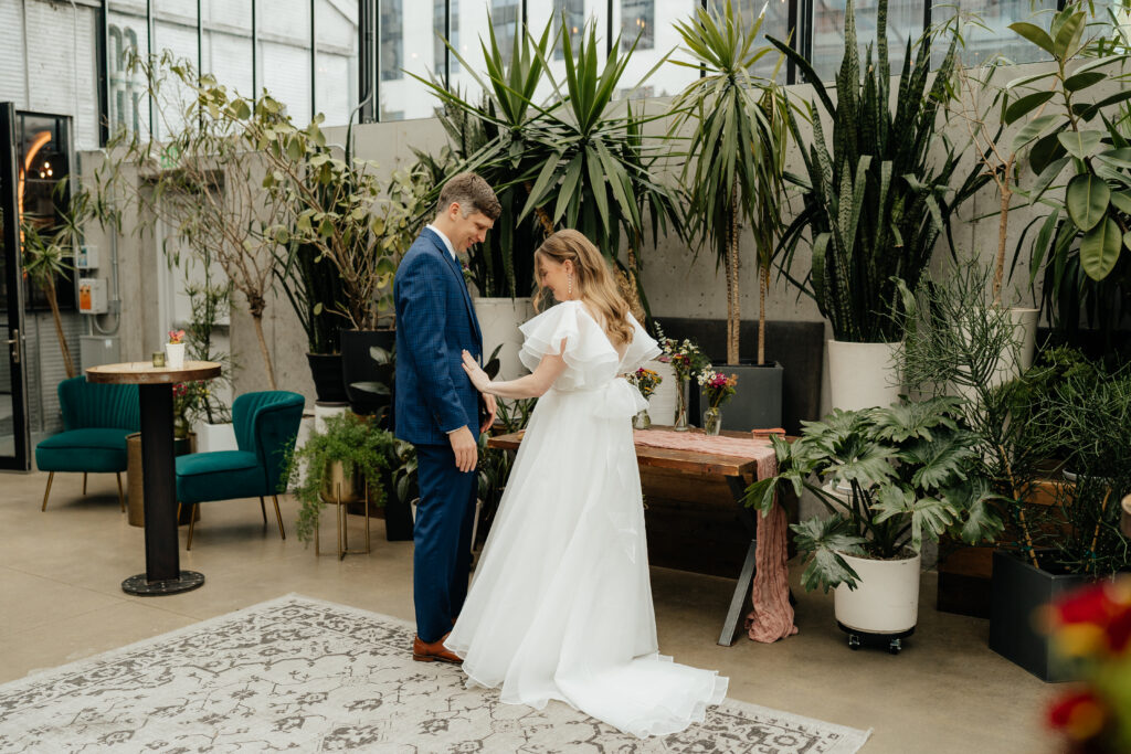 Afterward, the two of them walked through the Tinsmith together before anyone else arrived, taking in everything their coordinator had put together for them. Watching them move through that space hand in hand, noticing the details, was one of the quieter and more tender parts of the whole day. If you are considering a first look for your own wedding, moments like that one are exactly why I always encourage it.