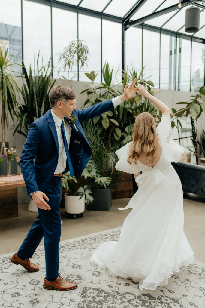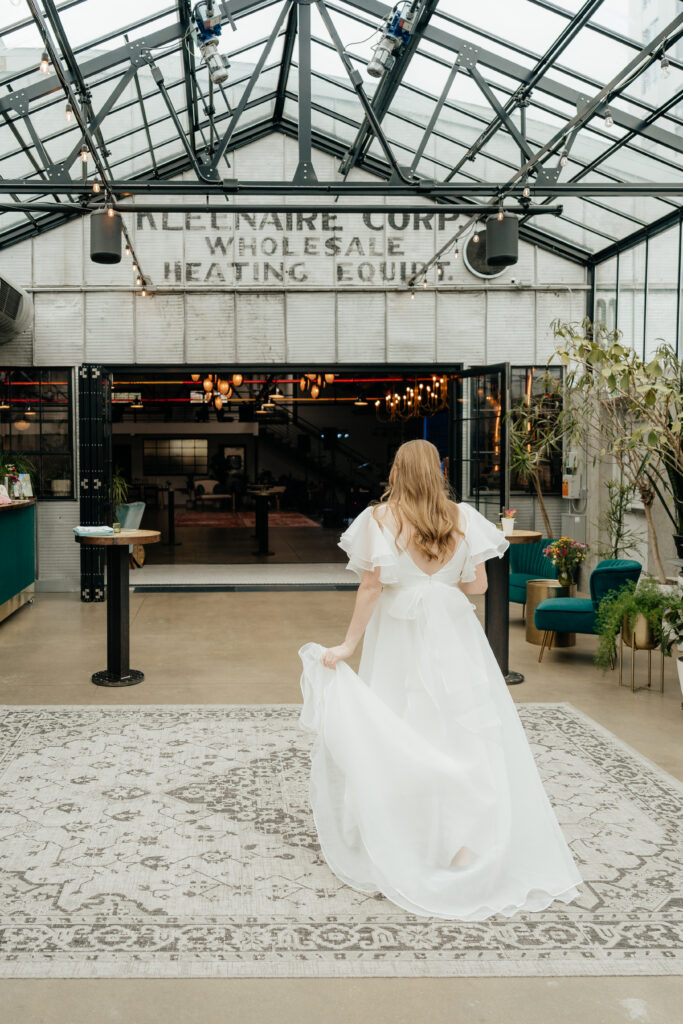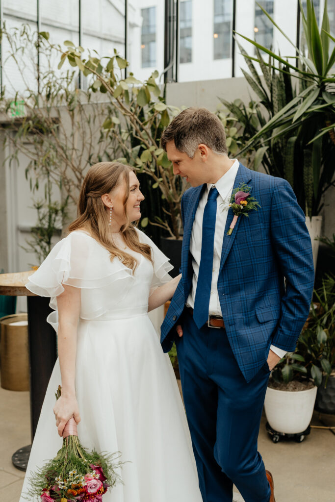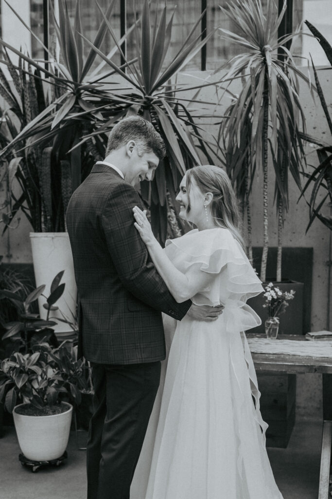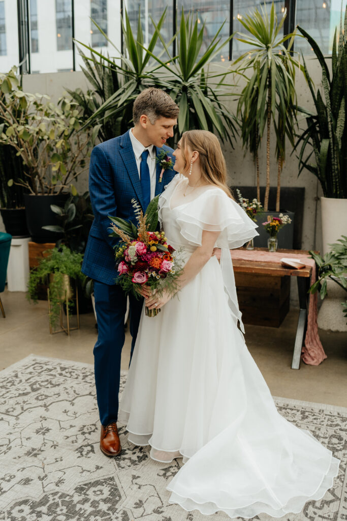 Afterward, the two of them walked through the Tinsmith together before anyone else arrived, taking in everything their coordinator had put together for them. Watching them move through that space hand in hand, noticing the details, was one of the quieter and more tender parts of the whole day. If you are considering a first look for your own wedding, moments like that one are exactly why I always encourage it.
