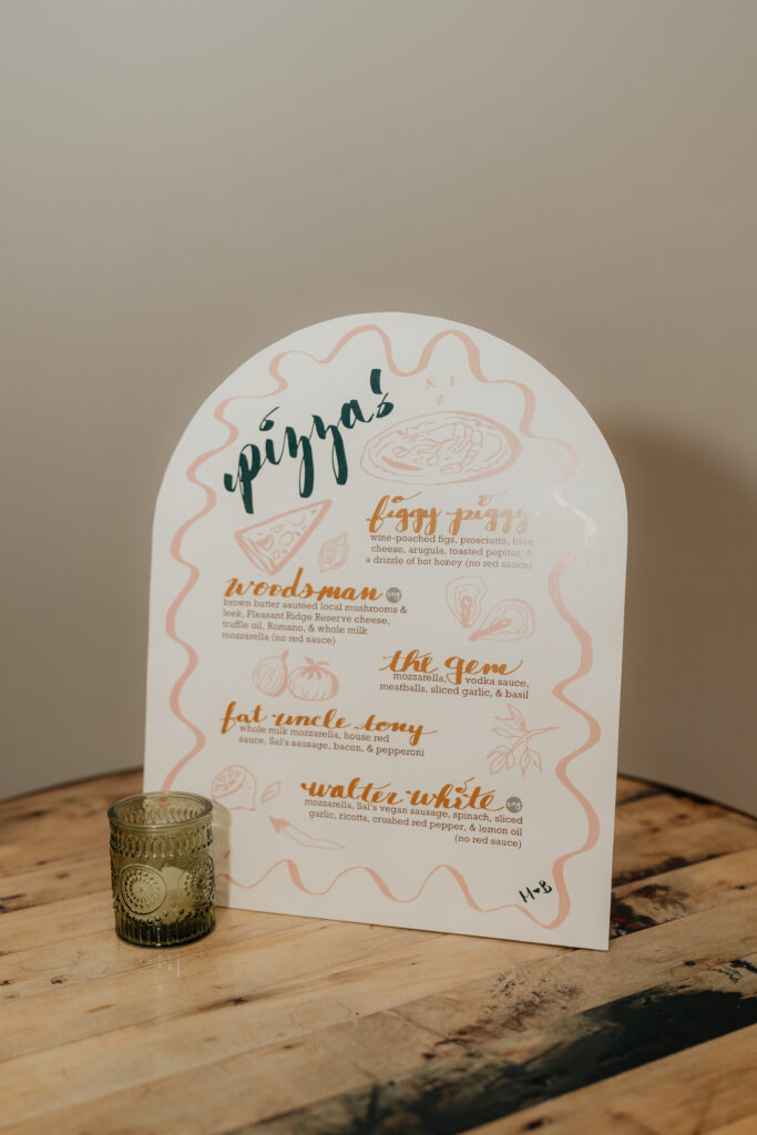 Back at the Tinsmith, guests were welcomed with appetizers and speeches from family that were funny, honest and moving in equal measure. Dinner was casual pizza shared around the room, which suited the day perfectly. No formality for its own sake, just good food and good company.