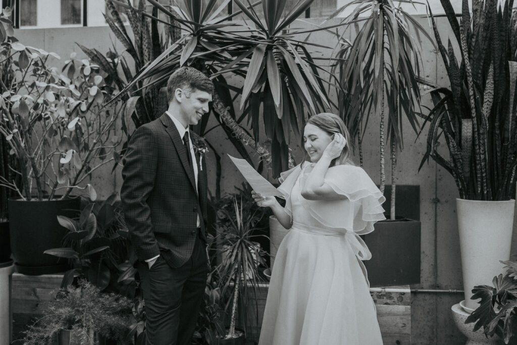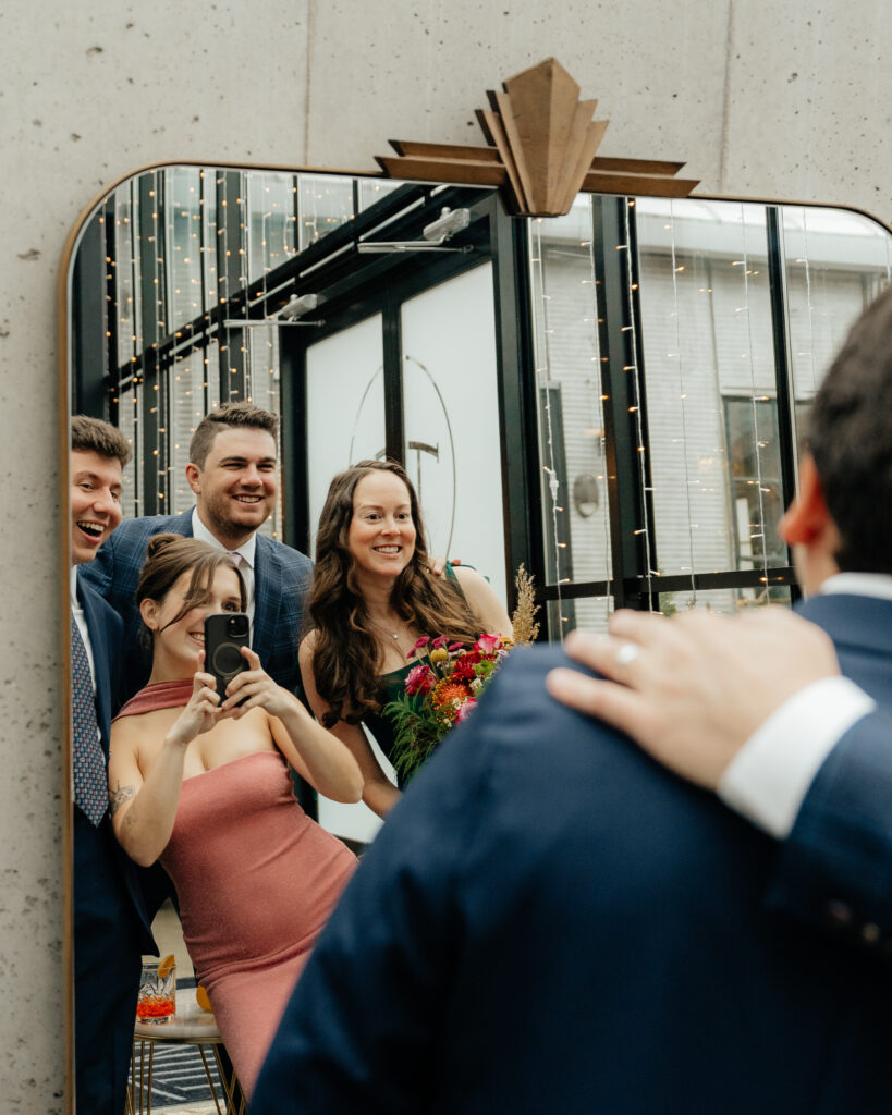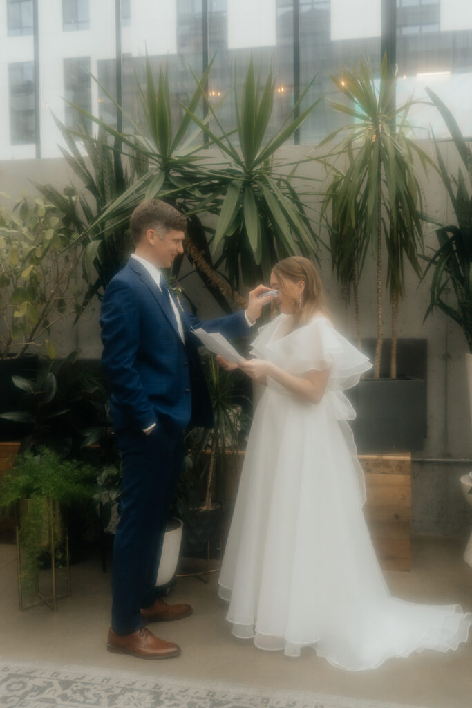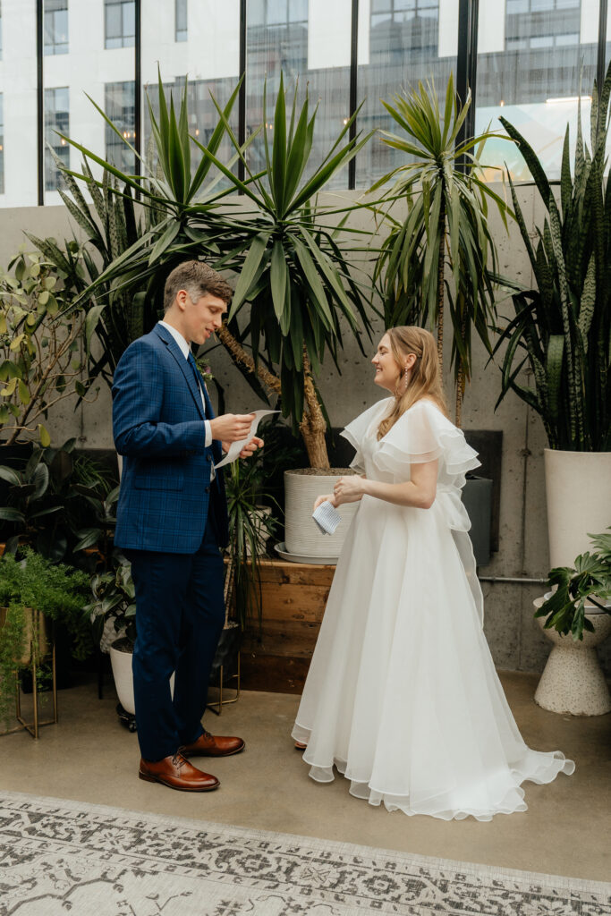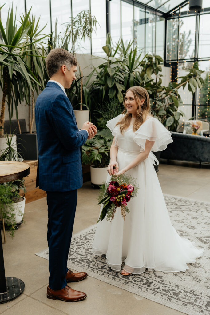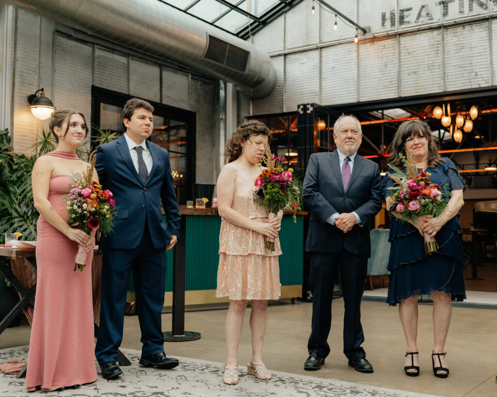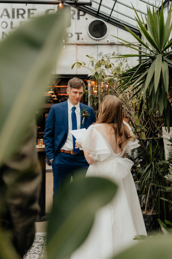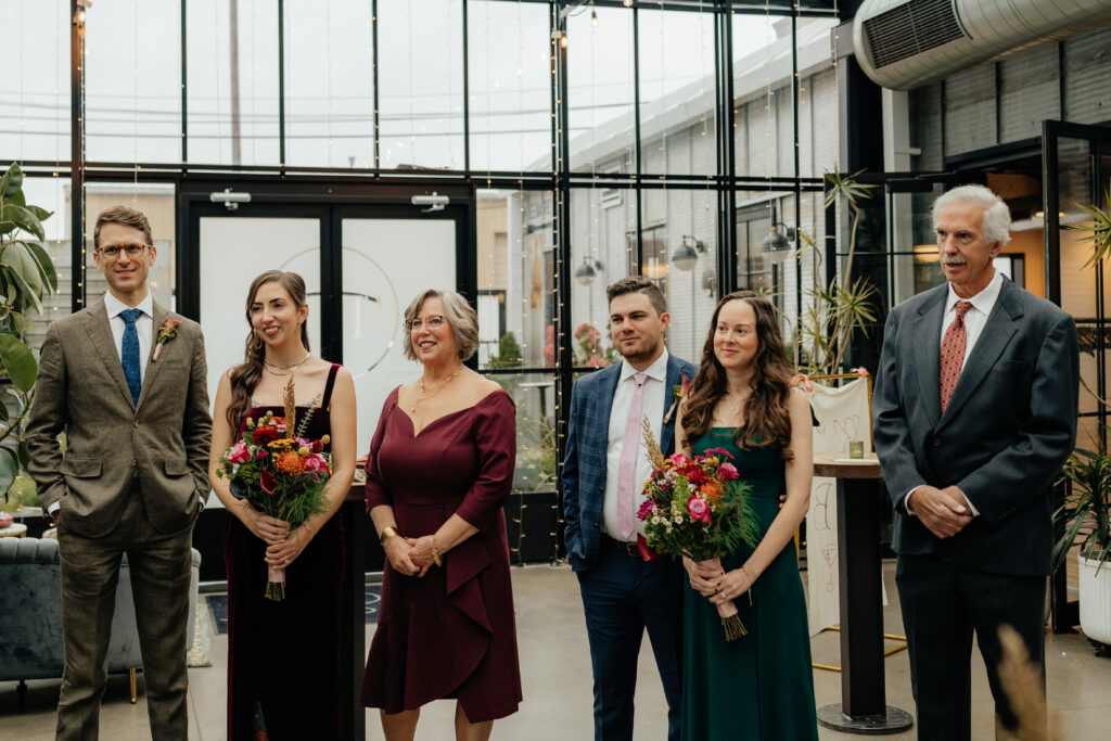 Before the ceremony, Mariel and Brian gathered with their immediate families in the greenery inside the Tinsmith for private vows. This is something more couples should consider and Mariel and Brian made it feel completely natural. First they grabbed their favorite drink, gathered their loved ones around, and then they spoke from the heart!