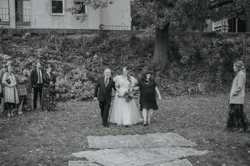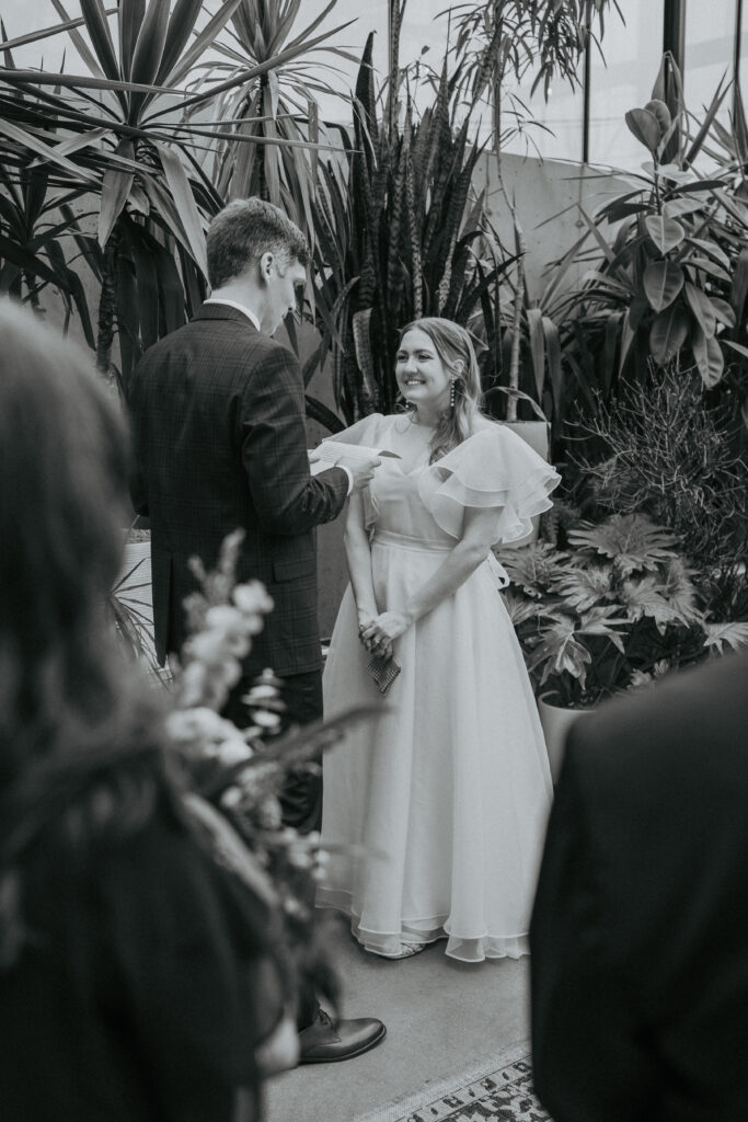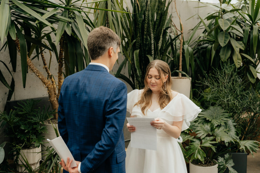 There was no crowd, no rushing, no sense of being watched. Just their closest people, the lush surroundings of the venue, and two people taking real time with the words they had written for each other, and the best part, they could pause. They could actually be present for it. After the vows, a small group of friends joined for a short celebration before everyone boarded a bus together to James Madison Park for the ceremony.