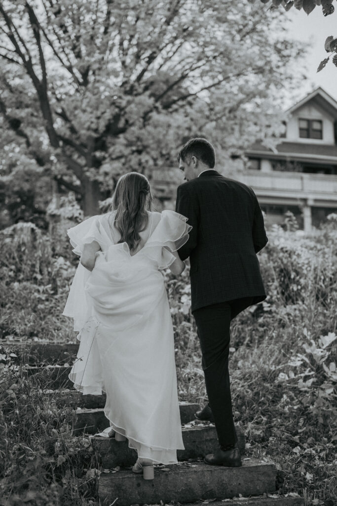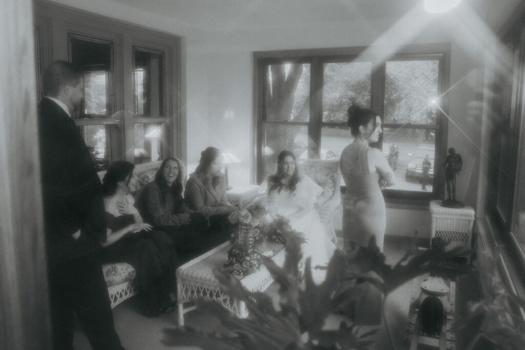 While guests made their way back to the Tinsmith, a small group of family stayed at the nearby house for a champagne toast and watched the sky shift over Lake Mendota. That stretch of time right after a ceremony, before the reception begins, is one of my favorite things to photograph. Everything is still fresh and no one has moved on to the next thing yet.