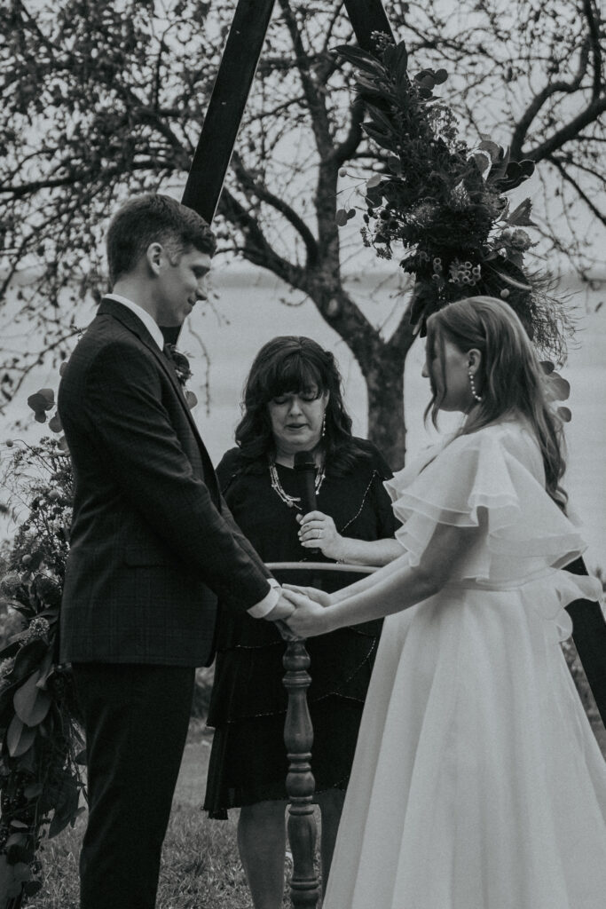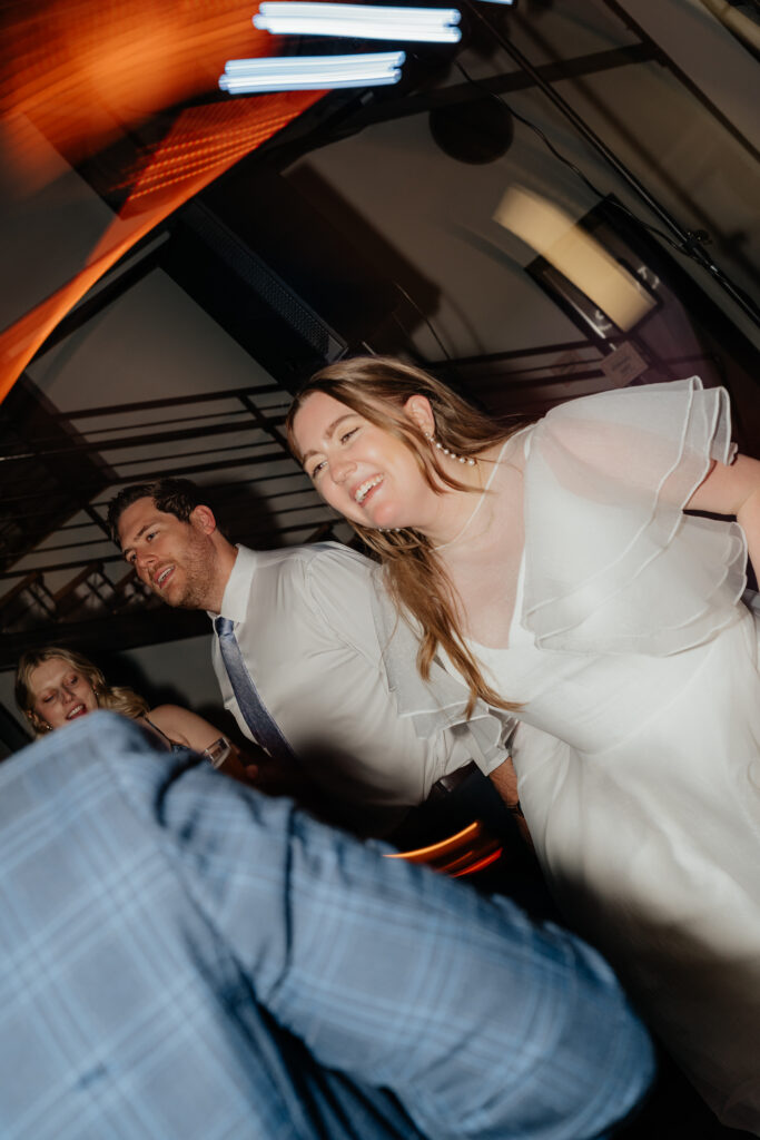 Outside it was overcast with light sprinkles coming and going through the day, and honestly the Tinsmith was the perfect setting for it. The soft grey light outside made the warmth inside feel even more intentional. For couples planning a southern Wisconsin wedding, this is worth remembering. The right venue makes the weather a non-issue. As someone who photographs through every kind of Midwest weather, overcast days are some of my favorites to work in. The light is even and flattering and quietly beautiful.
