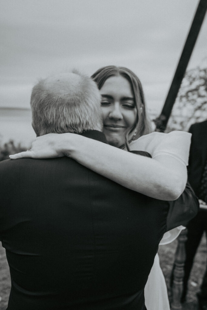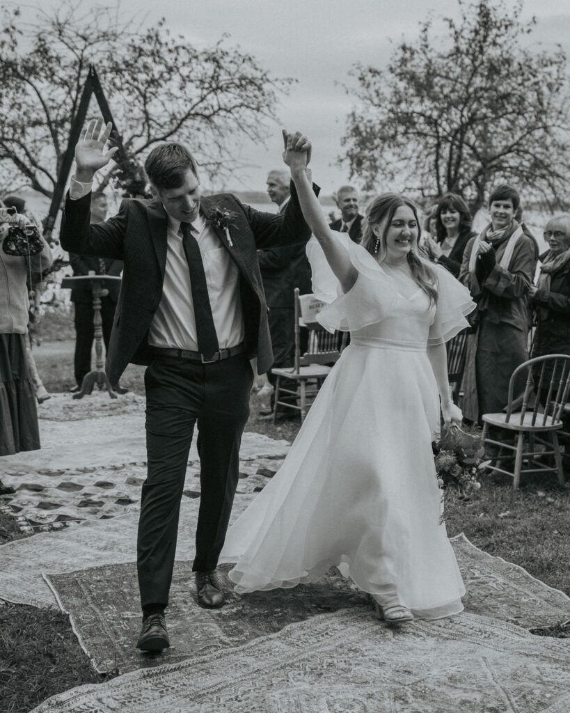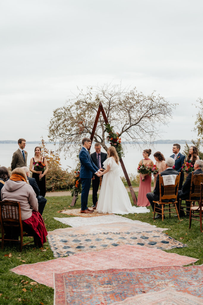 The family waited in a house rented nearby while guests found their seats along the water. The ceremony was short and genuinely sweet. Family members gave heartfelt readings and the vows were personal and true. When it was over, the celebratory walk down the aisle demonstrated the pure joy of their wedding!